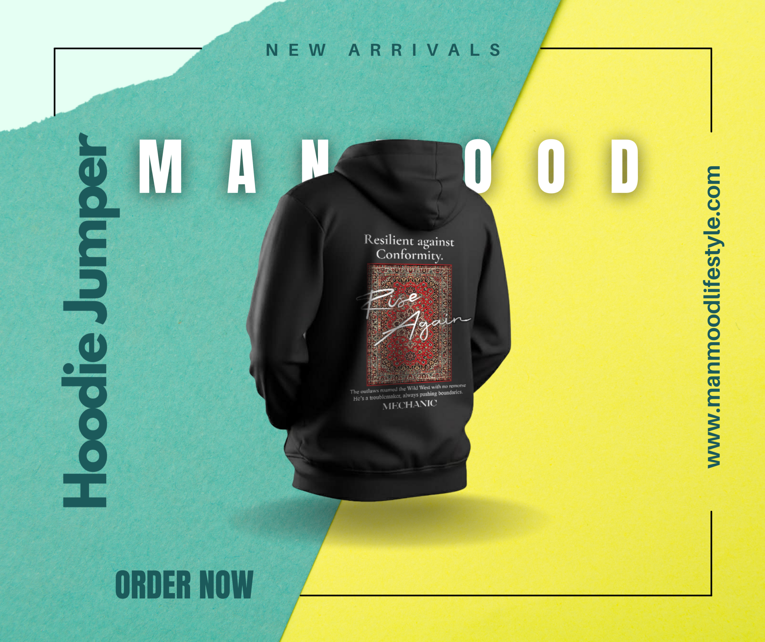 Resilient Against Conformity Art meets the street. This piece features an intricate Persian rug graphic paired with a message of resilience. It’s not just a jumper; it’s a statement about pushing boundaries and rising above the ordinary.